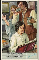 Ludwig van Beethoven (1770/1827), compositor alemán de familia modesta. Su padre, músico y tenor de la corte electoral, perdió su puesto al convertirse en un adicto del alcohol. El progenitor quiso hacer de él un niño prodigio. Le obligó a aprender piano, órgano y clarinete. Por esta razón tuvo una infancia solitaria. Recibió clases de Christian Gottlob Neefe. A los doce años fue contratado en la corte del príncipe elector de Colonia.